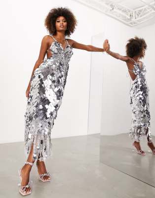 ASOS EDITION square paillette sequin midi dress in silver ASOS Very well made.