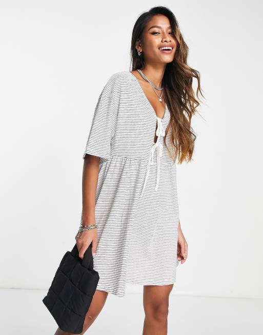 ASOS DESIGN neon oversized mini smock dress with gathered waist in orange ShopStyle Very well made.
