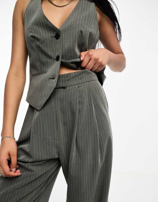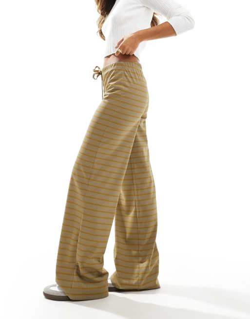 ASOS DESIGN stripe wide leg trousers in khaki ASOS Very well made.