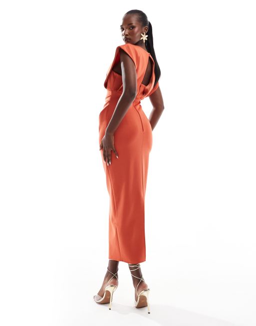 ASOS DESIGN structured bandeau folded bust detail midi dress in mocha ASOS Very well made.