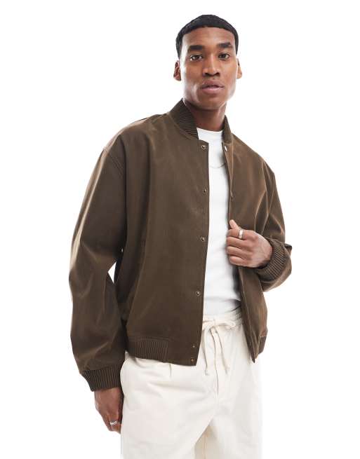ASOS DESIGN oversized faux suede bomber jacket in brown ASOS Very well made.