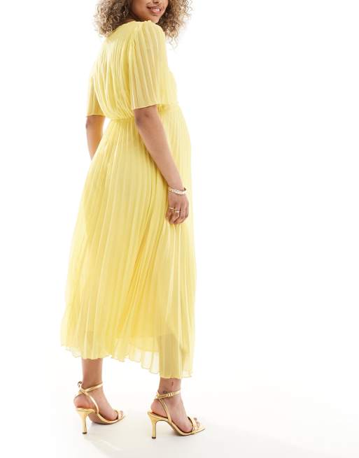 ASOS DESIGN Maternity pleated bodice flutter sleeve pleated midi dress in yellow ASOS Very well made.
