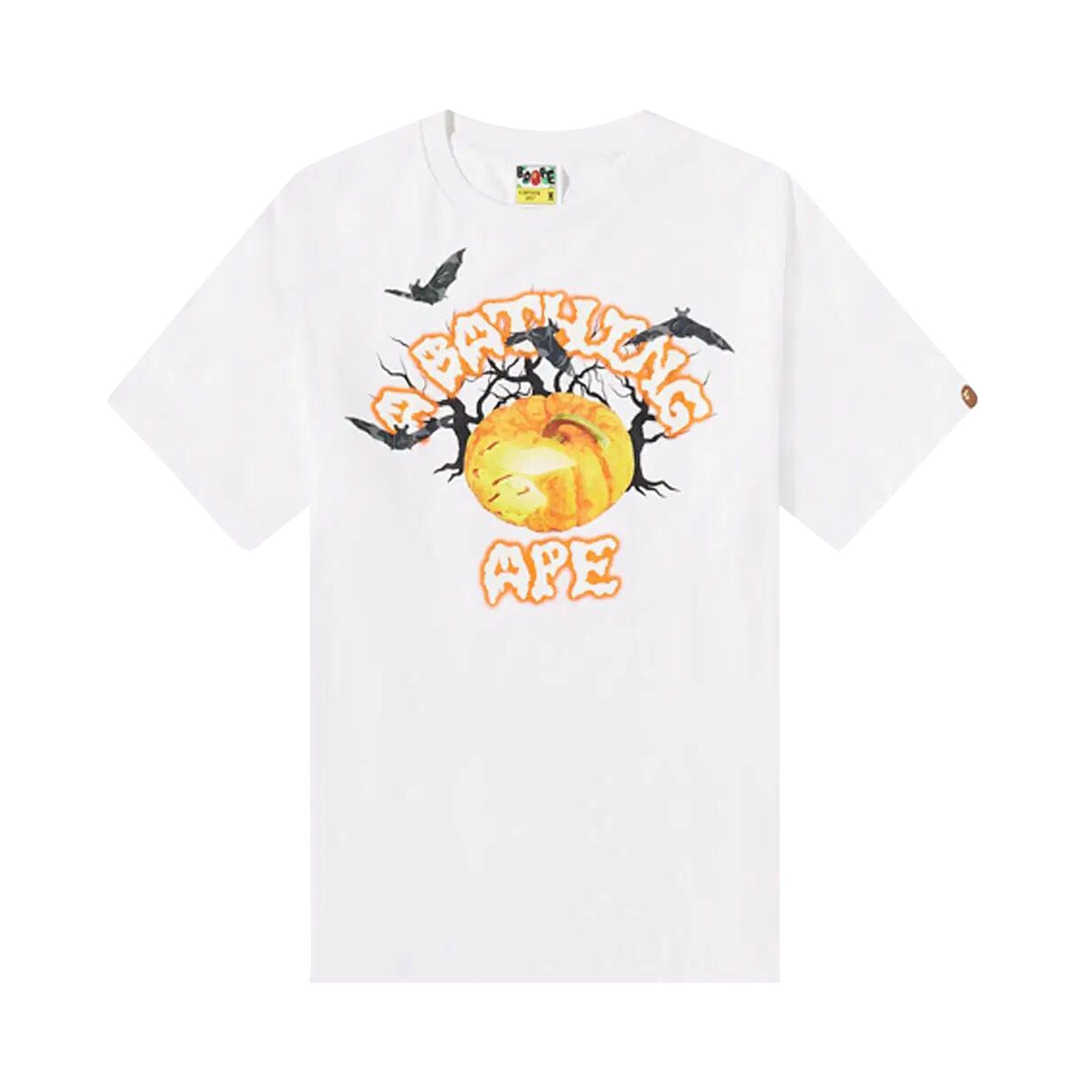 A BATHING APE BAPE Halloween Jack O Lantern College Tee White REVERSIBLE Very well made.