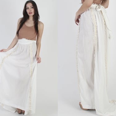 70s 80 s White Lace Maxi Skirt Boho Sheer Prairie Skirt Surf and the City Orcas WA Very well made.