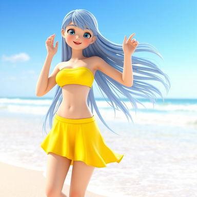 Vibrant 3D Model of Girl in Yellow Swimsuit on Sunny Beach Very well made.