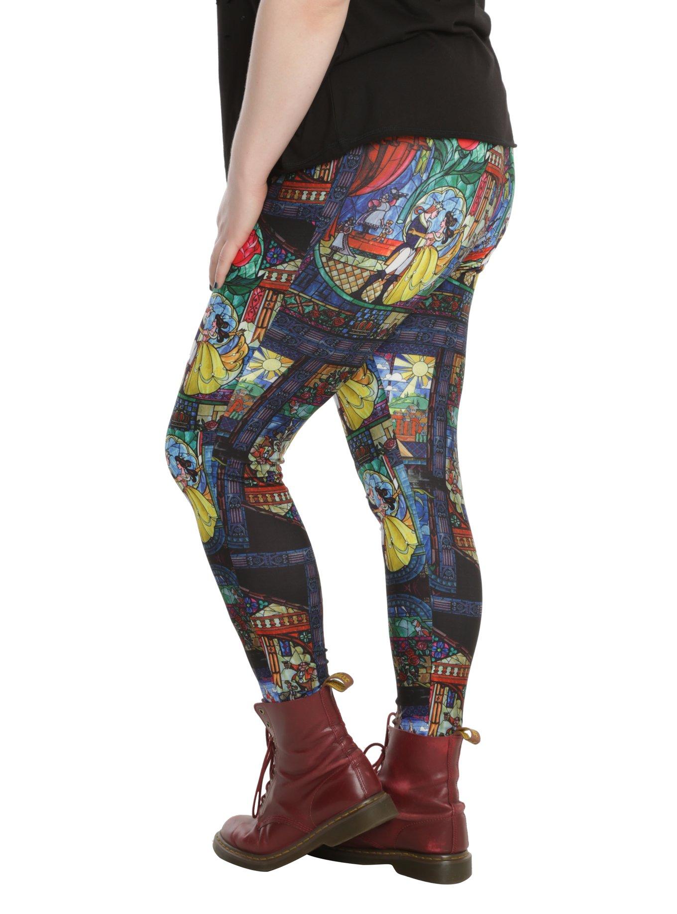 Disney Beauty And The Beast Stained Glass Leggings Plus Size Hot Topic Very well made.
