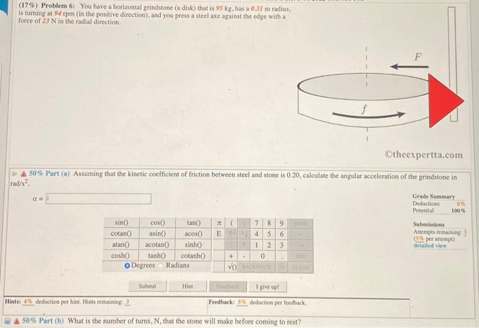 Solved 17 Problem 6 You have a horizontal grindstone a Chegg Very well made.